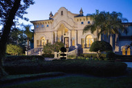 The Renaissance Italian Villa is the basis for all Mediterranean luxury mansions. The historic style was popularized by Andrea Palladio, whose designs were completely symmetrical -- formulated after Roman and Greek temples. The stucco walls and gently sloping ceramic tile roof exterior treatment with stately columns and generous arches are the cues that have popularized this style from Europe to the United States. Ideal for moderate climates the high ceilings and large windows allow light and views. Covered porches tie the inside to the outdoors. Trim and moldings can be simple or more decorative. Houses of this style have been formulated for smaller families to large compounds with several living and dining rooms, multiple bedrooms, studies, and accessory buildings.